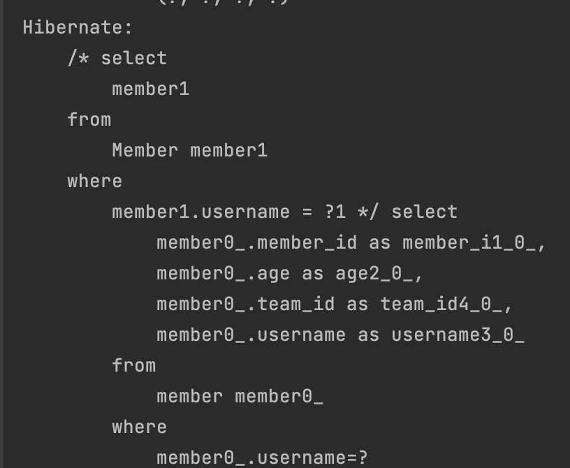 아래 그림과 같이 /**/ 안에 JPQL 문이 나온다 .
