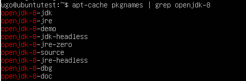 예를 들면 jdk 8 같은 경우 apt-get pkgnames | grep openjdk-8 로 찾아보면 없다 .