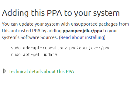 위의 링크는 오픈 jdk 여러 버전들이 저장되있는 PPA이다