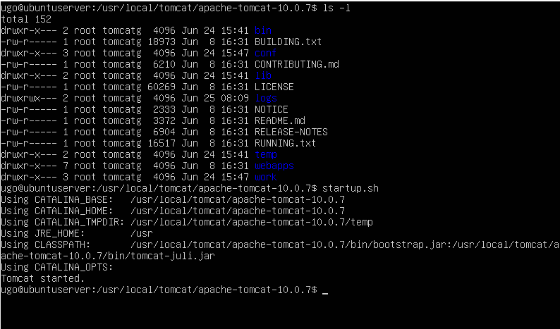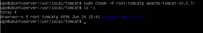 sudo chown -R root:tomcatg apache-tomcat-10.0.7