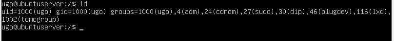 ugo ugo2 에게 사용그룹을 추가해줬다 . -a는 append를 의미하고 -G는 기타그룹을 의미한다. (기본 그룹은 -g)