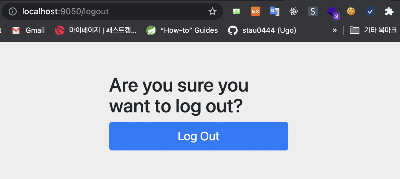 로그인 페이지를 직접 만들어서 지정했을시에는 로그아웃 페이지가 생성되지 않기 때문에 원한다면 직접 페이지를 만들어야하고 페이지가 없다면 로그아웃 post 요청시에 바로 로그아웃된다