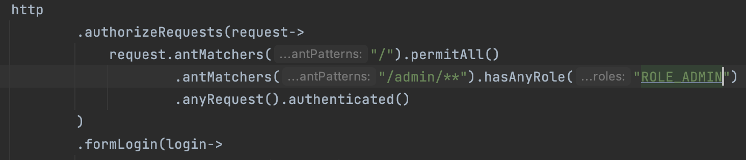 위 그림의 permitAll hasAnyRole authenticated 같은 정보들 파싱되어 SecurityMetadataSource에 담긴다.