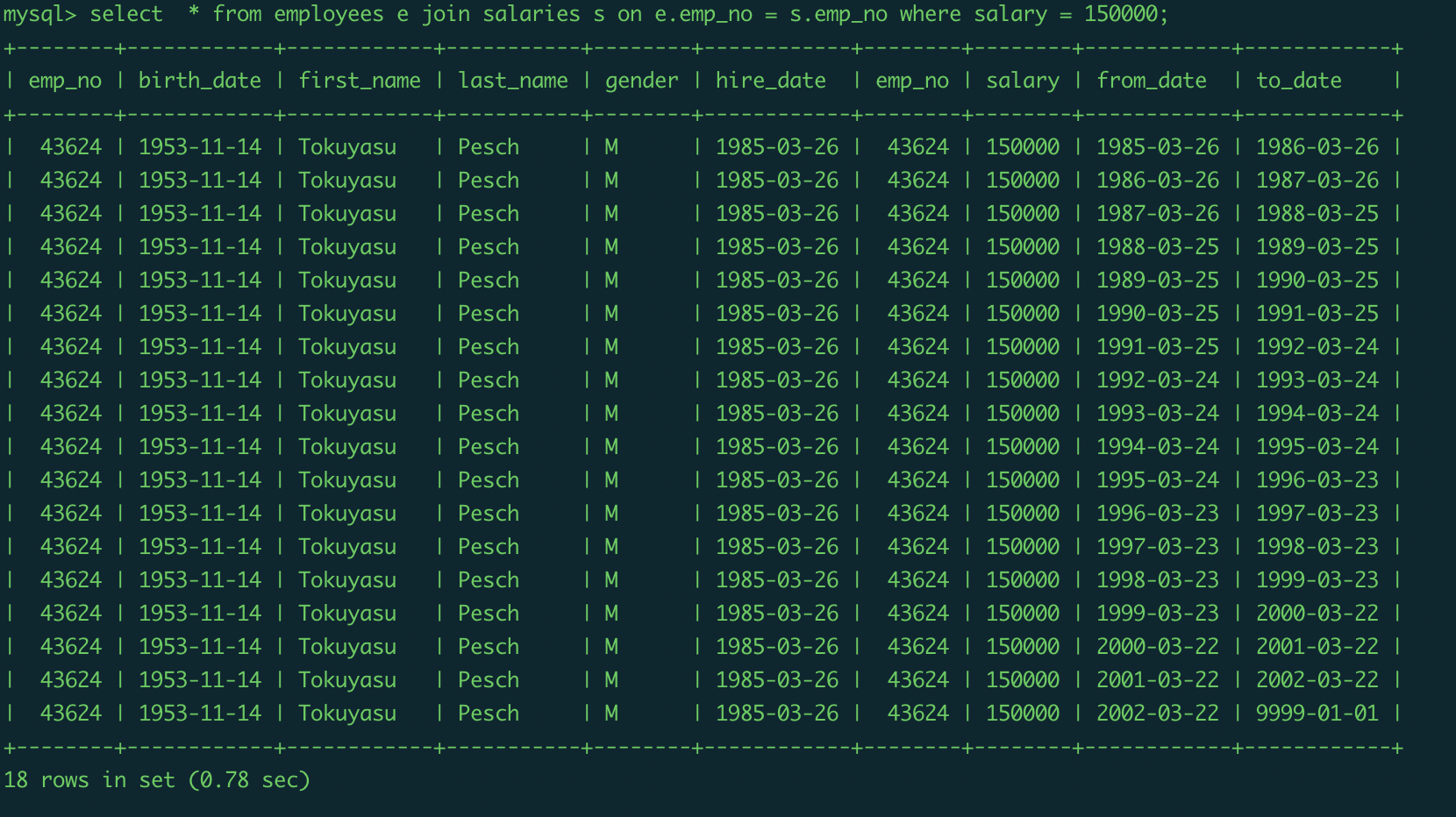 (https://github.com/datacharmer/test_db <- 링크의 샘플데이터를 활용하여 테스트했습니다.)