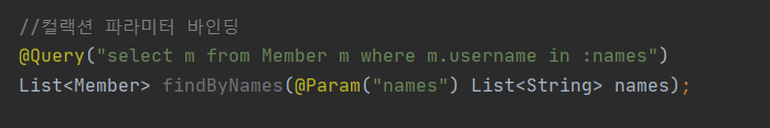 파라미터를 컬렉션으로 넘겨서 조회할 수도 있다