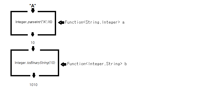 주의할 점은 위의 그림의 a의 리턴타입이 interger고 b의 입력타입이 interger 인 것 처럼 첫번째 함수의 리턴타입이 이어지는 함수의 입력타입과 같아야 한다